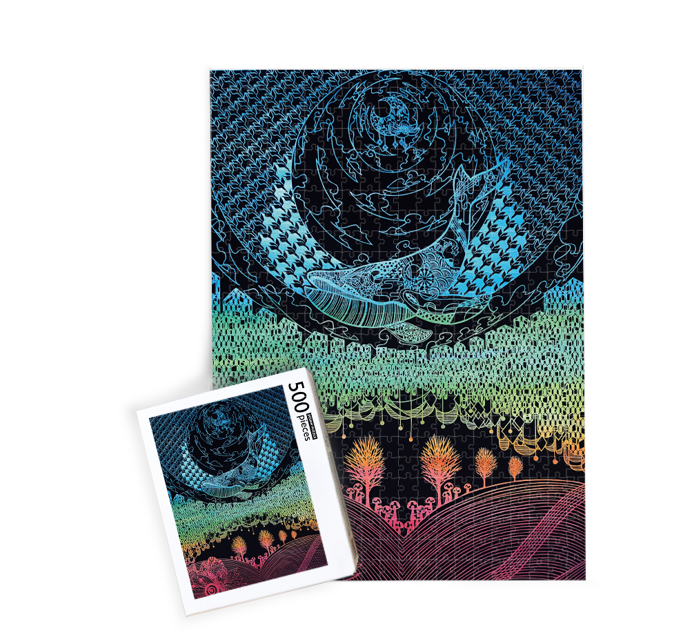 切り絵作家「ogi(おぎ)」さんとのコラボ第2弾は、雄大な鯨と、広がる世界をモチーフにした壮大な作品を元にしたパズルです。