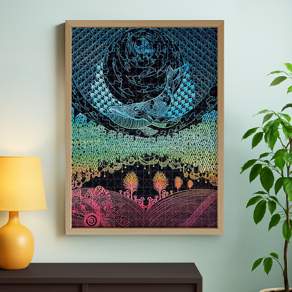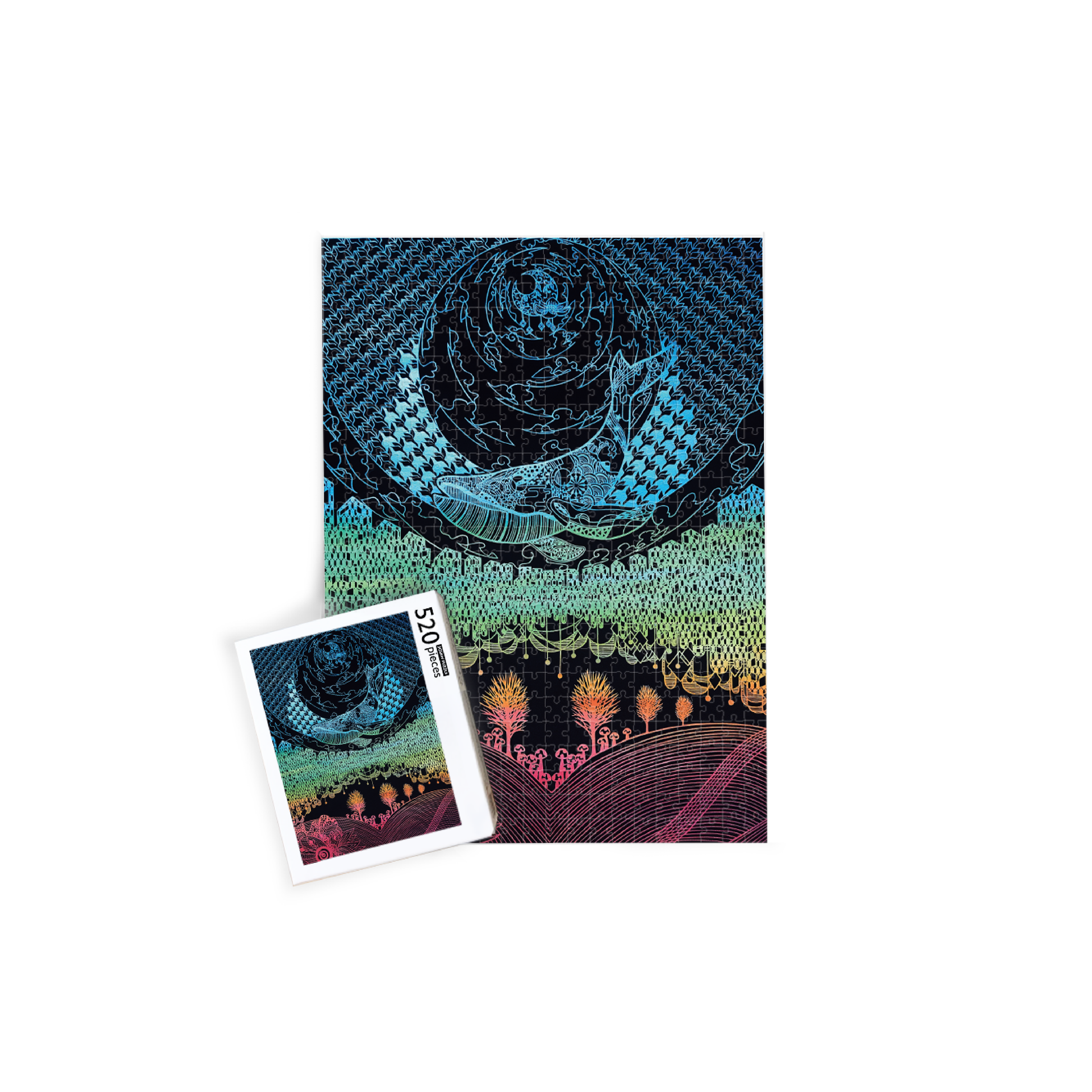 切り絵作家「ogi(おぎ)」さんとのコラボ第2弾は、雄大な鯨と、広がる世界をモチーフにした壮大な作品を元にしたパズルです。